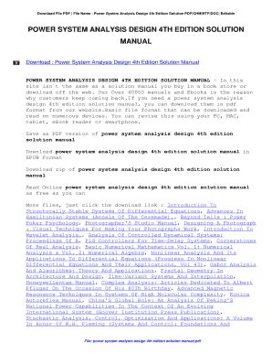 In order to read or download power system analysis design 4th edition solution manual ebook, you need to create a FREE account.