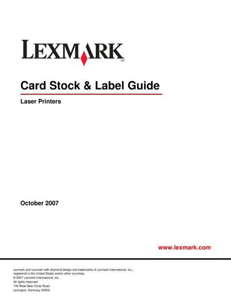 | File Name: card stock label guide lexmark.pdf Size: 6358 KB Type: PDF, ePub, eBook |